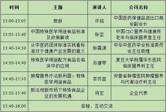 中國醫(yī)藥保健品進出口商會擬定于2016年6月22日下午在上海“第七屆中國國際健康產(chǎn)品展覽會”與“2016天然及營養(yǎng)保健品中國展”期間舉辦“第一屆特殊醫(yī)學用途配方食品政策交流會”。本次會議圍繞“法規(guī)解讀”、“臨床應用”和 “標準制定”展開,屆時將邀請主管部門領導和特醫(yī)食品專家到會演講,并進行專題交流研討,歡迎您的參與。
