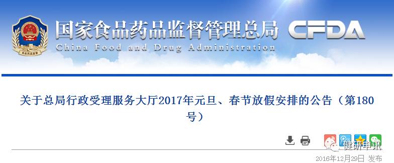 CFDA受理服務(wù)大廳2017年元旦、春節(jié)放假安排