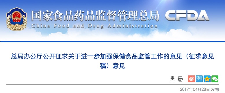 為全面貫徹落實(shí)黨中央、國務(wù)院“四個最嚴(yán)”“放管服”的要求,進(jìn)一步加強(qiáng)保健食品監(jiān)管工作,保障人民群眾“舌尖上的安全”,我局研究起草了《關(guān)于進(jìn)一步加強(qiáng)保健食品監(jiān)管工作的意見(征求意見稿)》(附件1),現(xiàn)公開向社會征求意見和建議。請于2017年5月12日前,填寫意見反饋表(附件2),以電子郵件形式反饋。