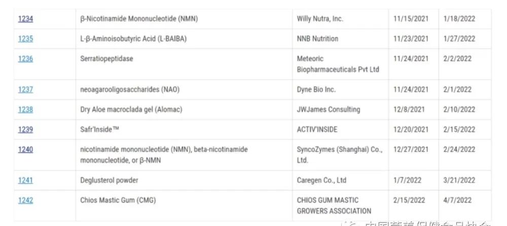從中可以看出,編號為1234和1240的兩個申請都是NMN的申請,FDA也對此申請進行了相應的回復。